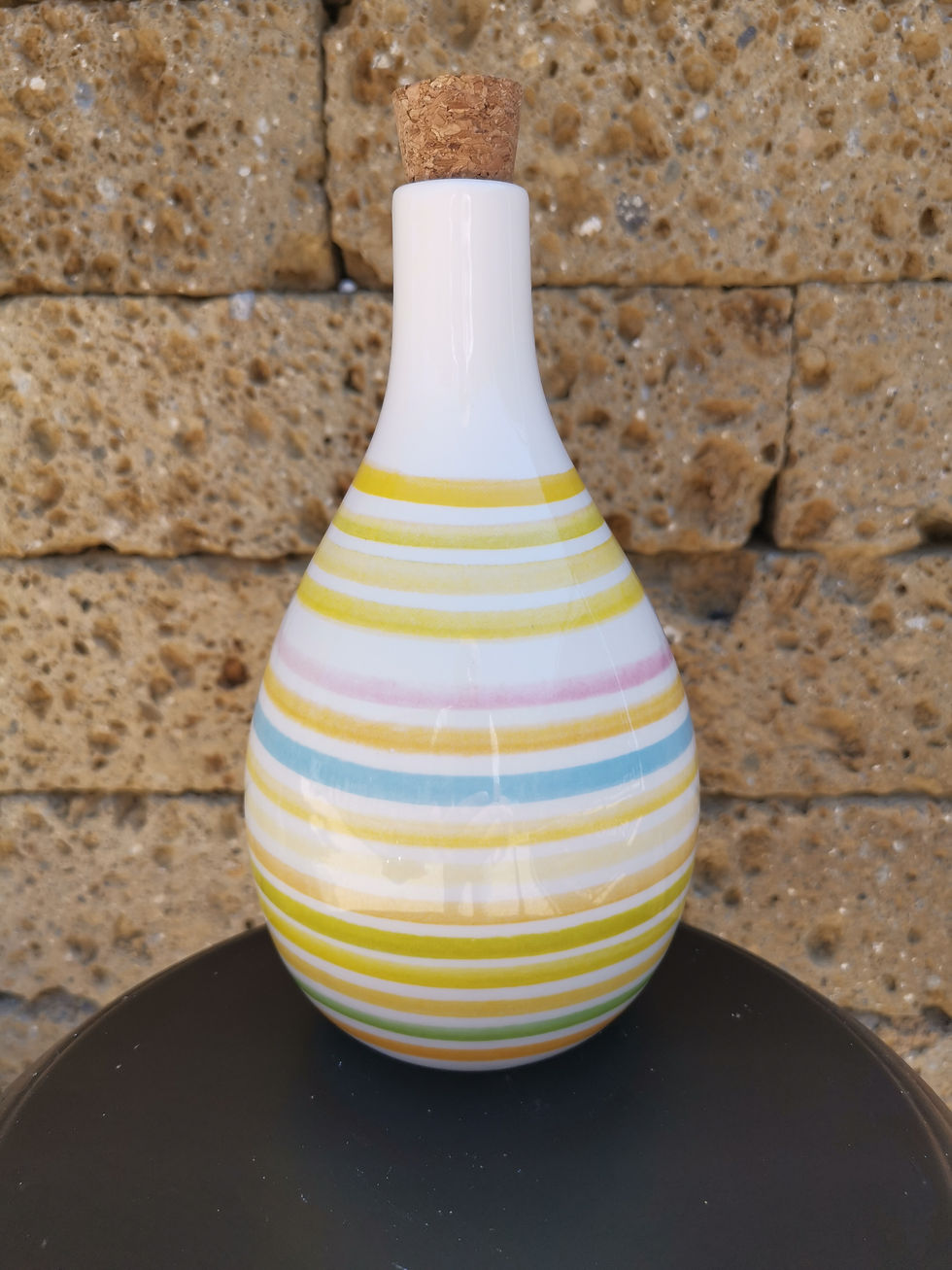 Modern bol olijfolie kruikje 750 ml, strepen roze, rood,geel groen