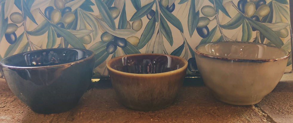 plankje met schaaltje en vorkje voor olijven